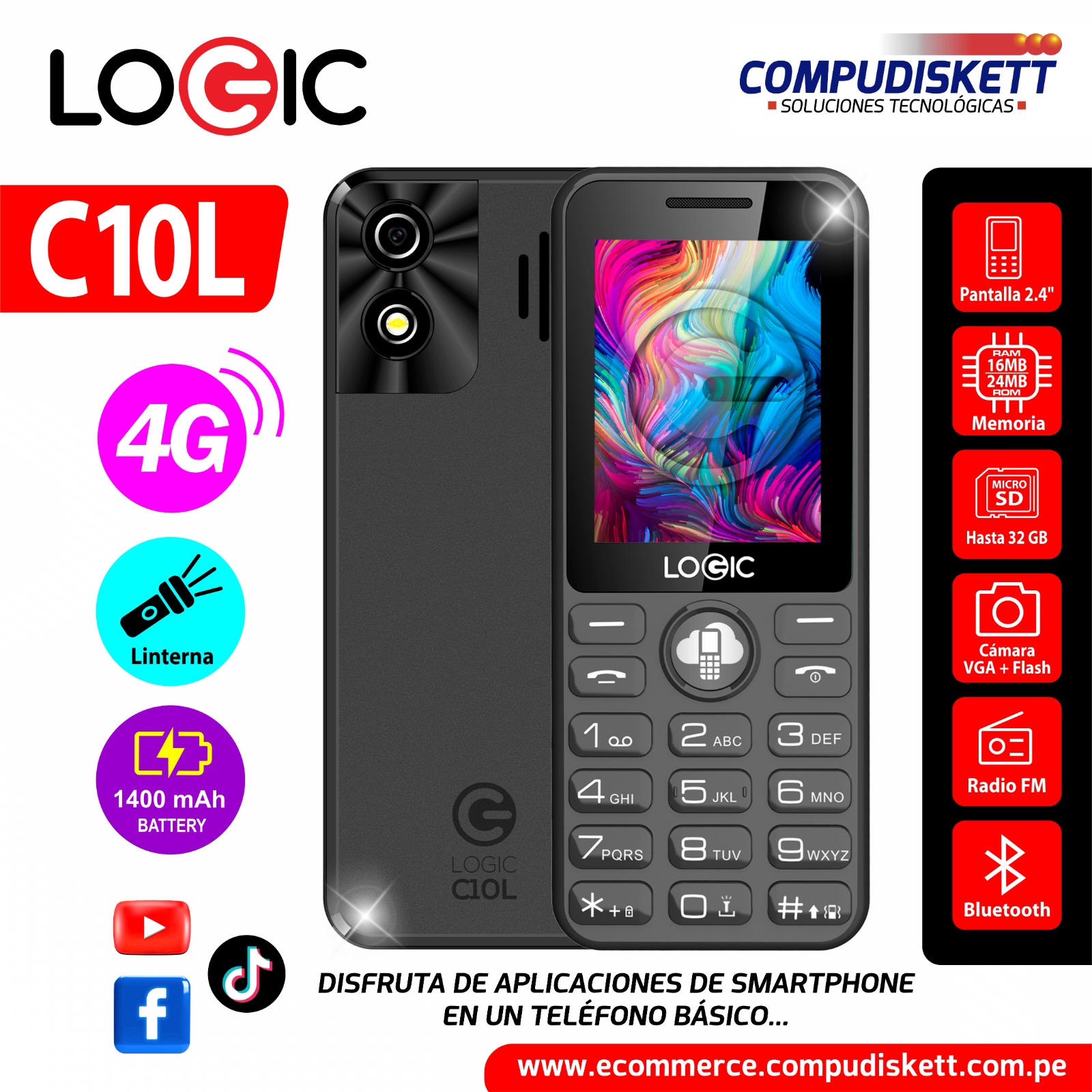 El CELULAR LOGIC C10L 4G BLACK DS es un smartphone práctico y accesible con conectividad 4G, pantalla amplia, Dual SIM y batería de larga duración. Ideal para el uso diario, redes sociales, llamadas y navegación básica con rendimiento estable.